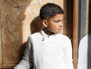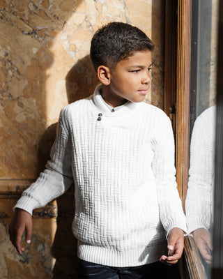 Organic Mock Neck Rosette Sweater