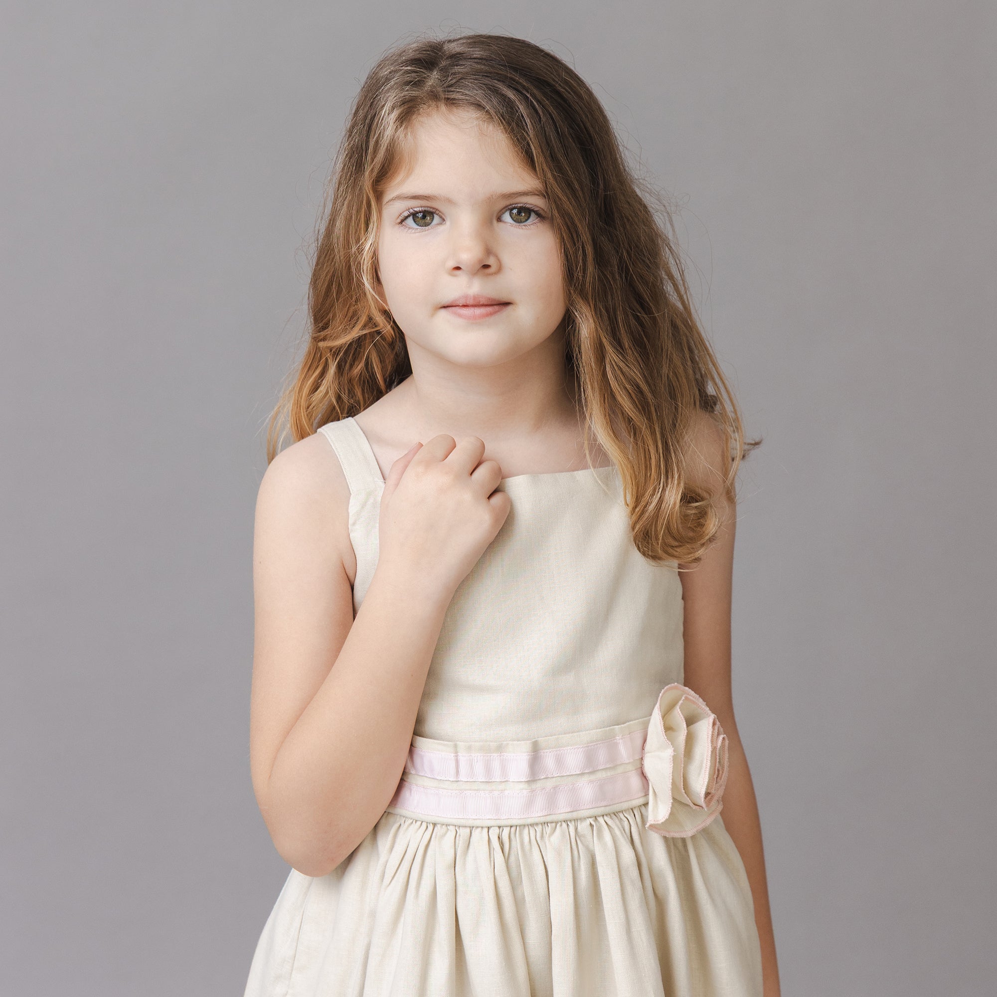 She'll be the epitome of sweet sophistication in our soft organic cotton and linen blend cami dress. Features a beautiful fit and flare silhouette, a ribbon trim at the waist and hem, a decorative rosette, and a zipper down the center back with bow detail. A gorgeous piece for all of spring's special occasions.