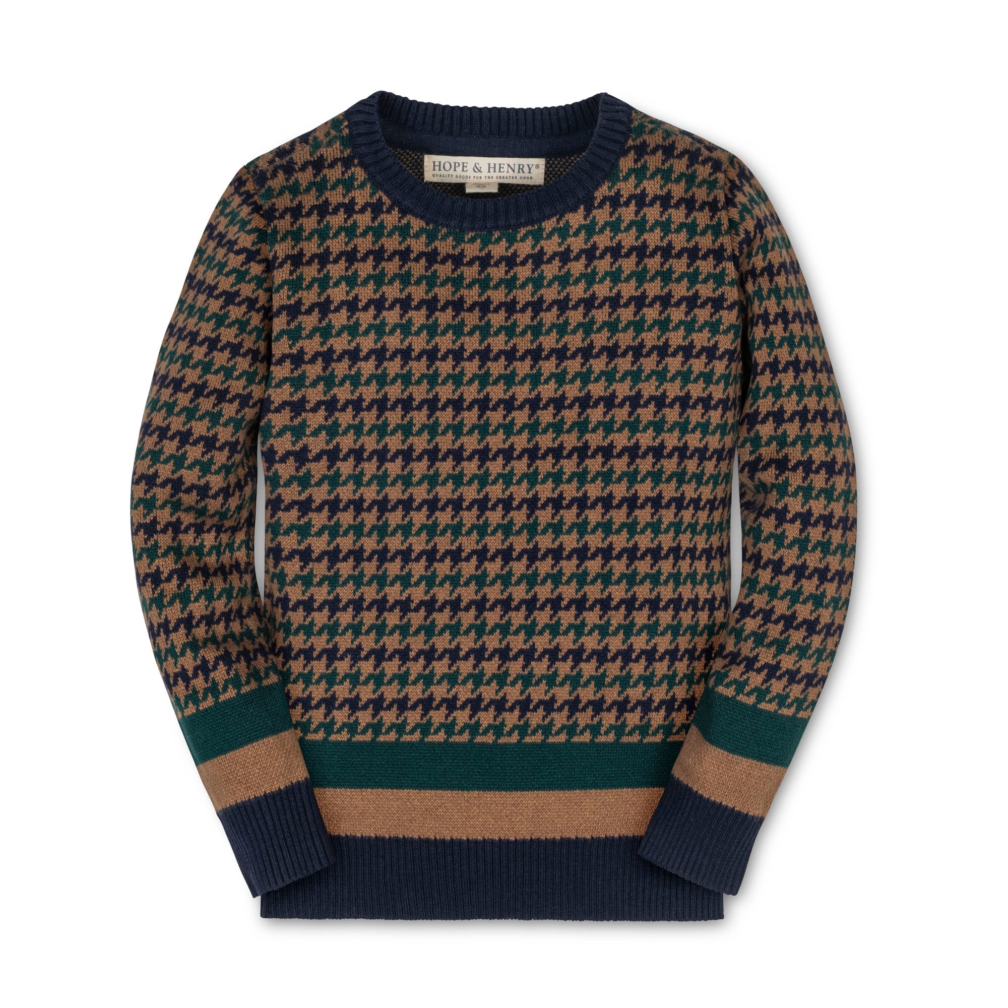 Our stylish crew neck pullover sweater is crafted in soft organic cotton and will keep your guy warm all season long. Features a beautiful intarsia design and rib knit trim at the cuffs and collar. The easy pullover silhouette pairs perfectly with our collection of organic cotton button downs and pants.