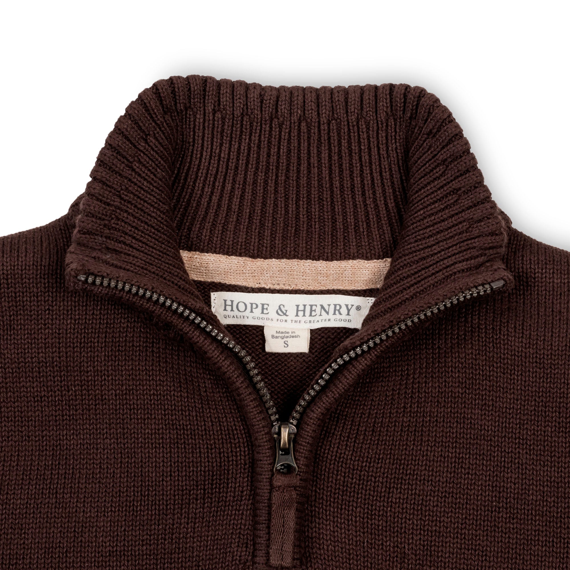 This soft sweater will be a classic cool weather wardrobe staple for your guy. Features a rib knit mock neck, front half zip for easy-on and easy-off, faux suede elbow patches, and our signature super cozy 100% organic cotton yarn. Pairs perfectly with our collection of organic cotton button downs for a polished look.