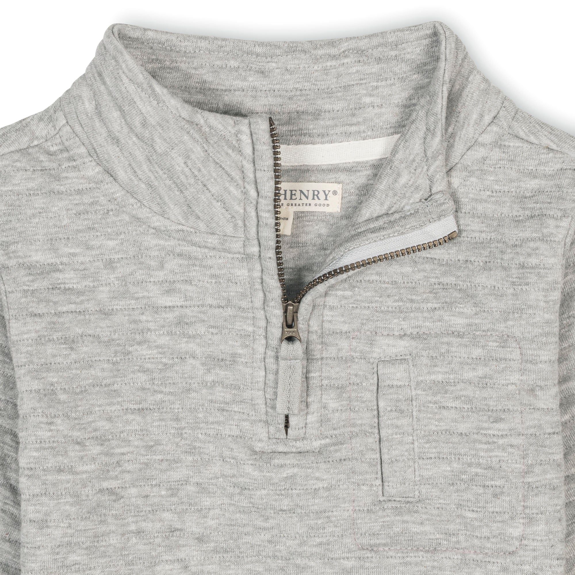 This soft pullover will be the layering piece your boy will love to wear. Features a mock neck with half zip for easy dressing, rib knit trim, and a left chest pocket. This effortlessly versatile pullover is crafted from our soft, quilted organic cotton blend fabric and layers nicely over our collection of organic cotton polos.