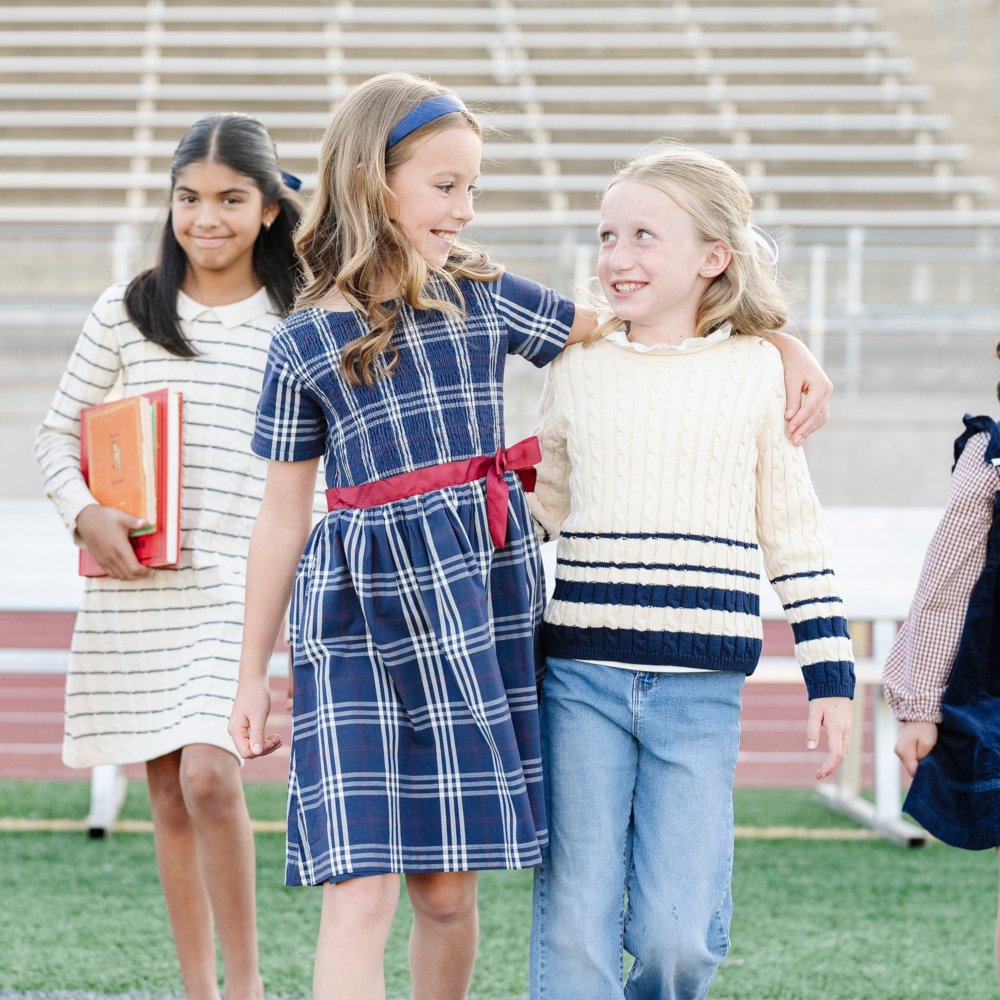 She will be ready to hit the classroom in style with our adorable short sleeve dress. Cut from our crisp organic cotton poplin with just a touch of stretch, this polished dress features smocking at the front bodice, a grosgrain ribbon sash and bow, and a zipper down the back for easy dressing. Bodice lined in organic cotton.