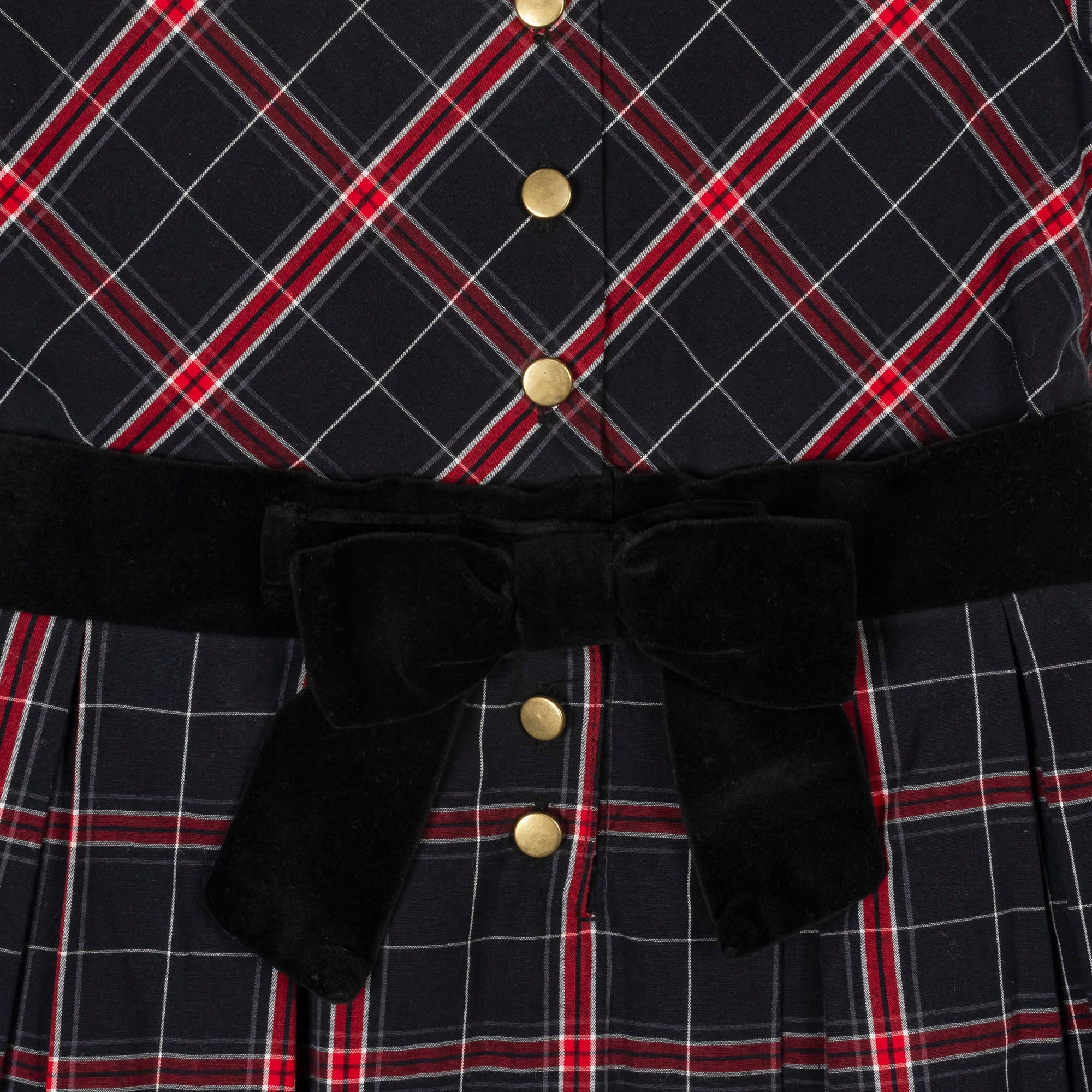 Made in crisp organic cotton stretch poplin and featuring a classic silhouette, this pretty dress will be your girl's go-to piece for picture time. Features flattering cap sleeves, a peter pan collar, and velveteen trim at the waist sash and bow. Gold button closure down the center back for a bit of shine.