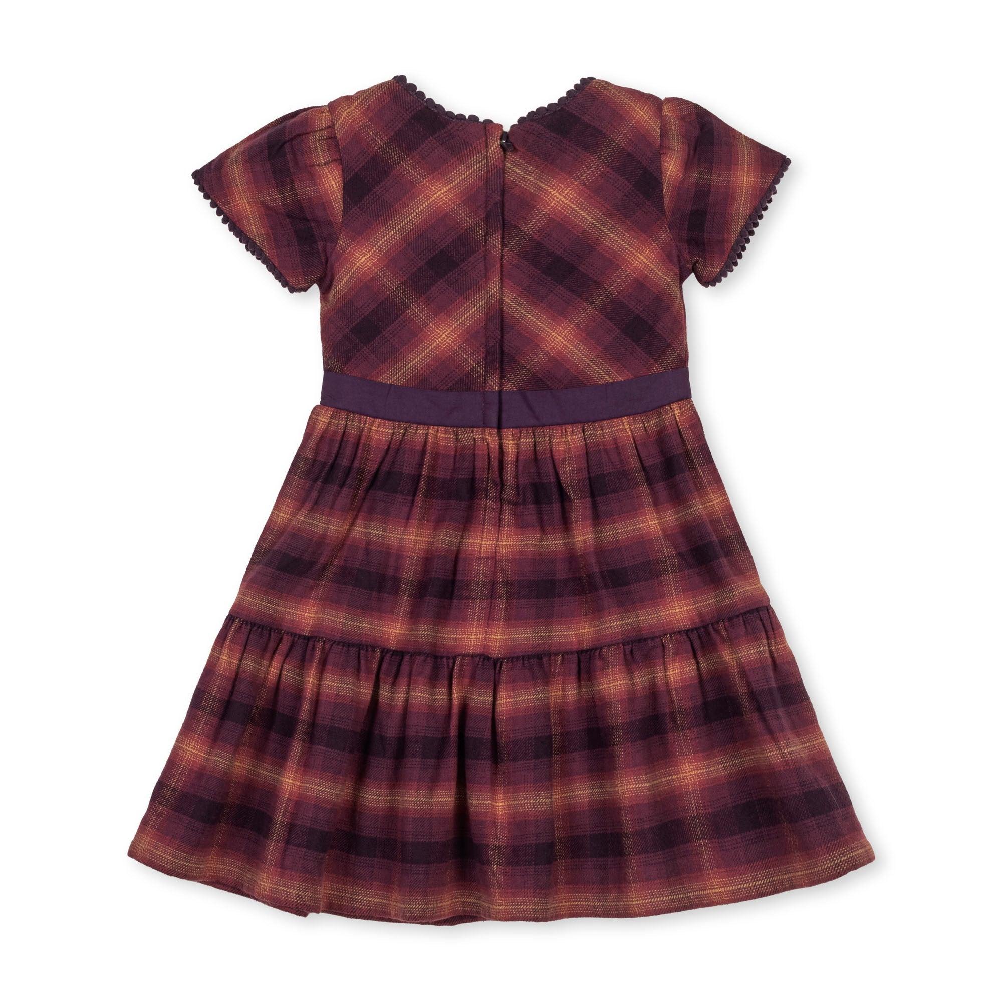 Our elegant special occasion dress in soft organic cotton brushed flannel has all the incredible details that make it perfect for everything from dinner with the family to twirling on a dance floor. Features puff sleeves with bobble trim, a tiered skirt, waist sash with bow, and a zipper closure at the center back. A showstopper for the season.