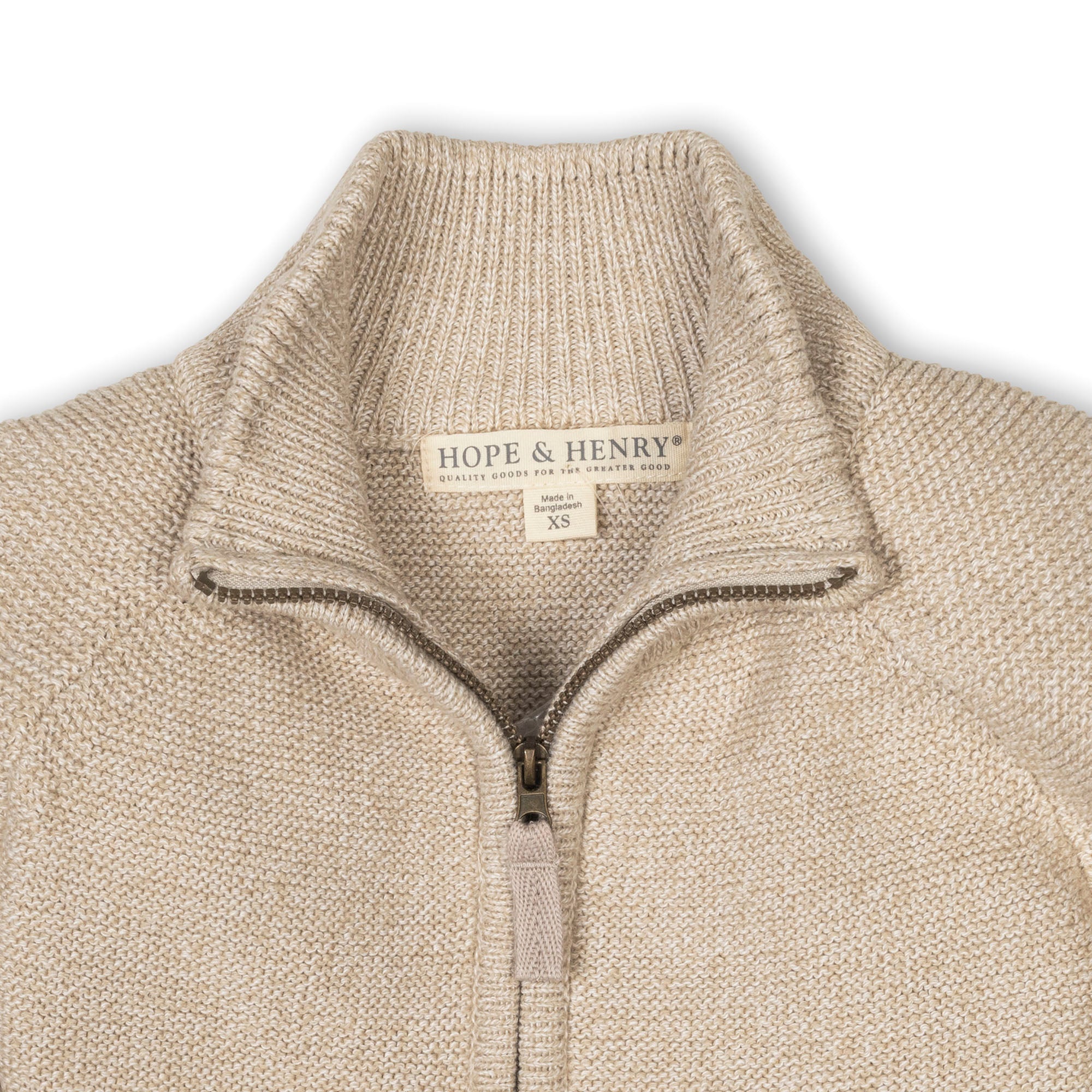 Our stylish mock neck full zip sweater in soft organic cotton is a favorite layering piece in your boy's fall wardrobe. Features raglan sleeves, rib trim, front kanga pockets, and a full zip front closure for easy on and off. Layers nicely over our collection of organic cotton polos and button downs.