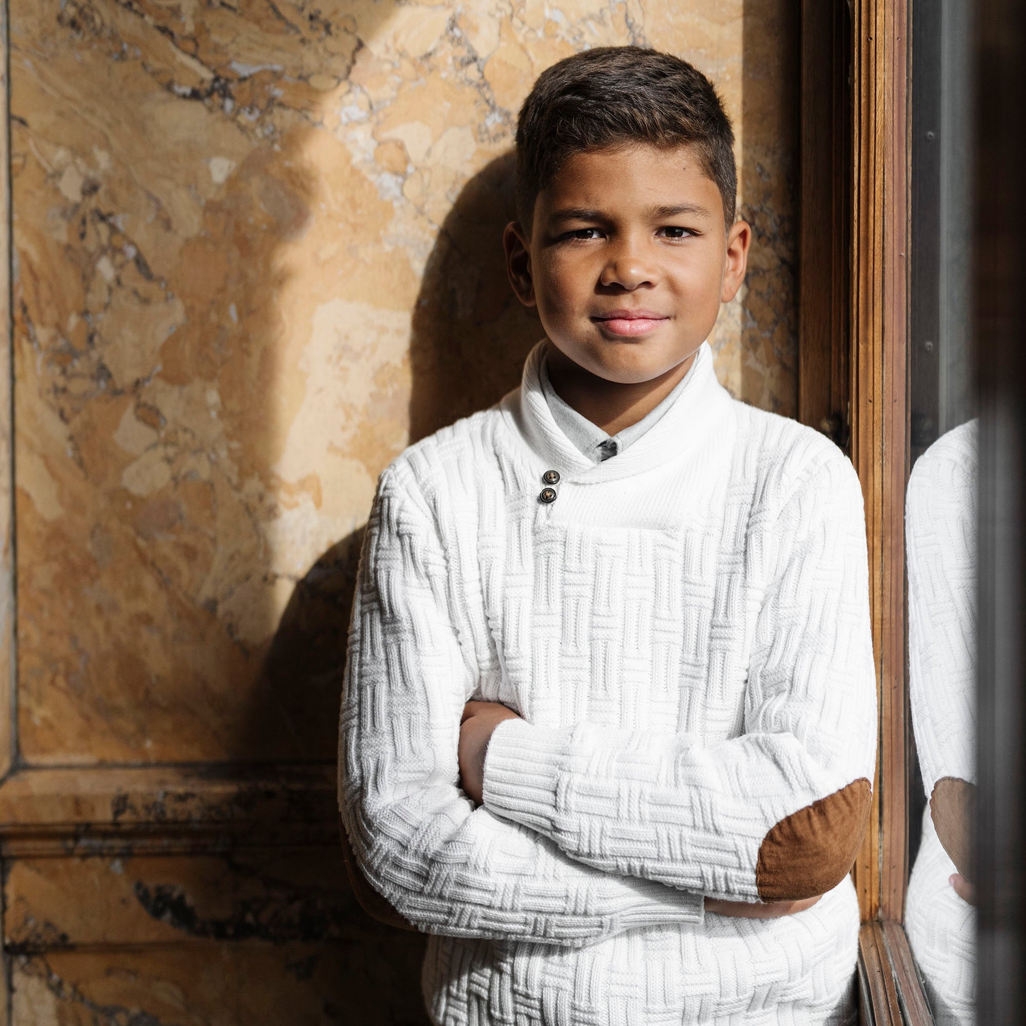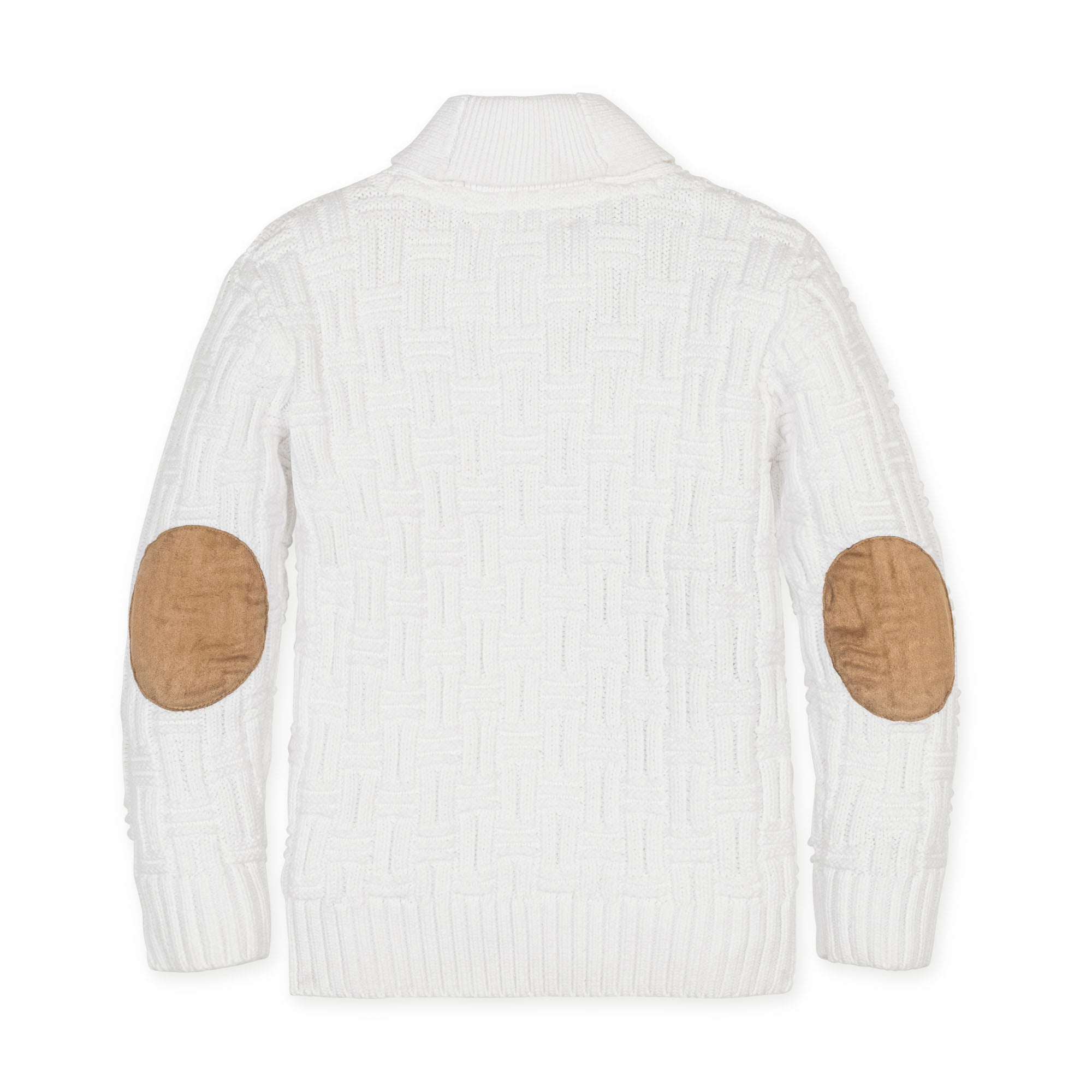 Our shawl collar sweater in soft organic cotton is the perfect pairing of comfort and style for your boy. Special attention to details such as the cozy shawl collar, button closure, and timeless cable knit design make this an instant classic. Layers nicely with our collection of organic cotton button downs for a complete look.
