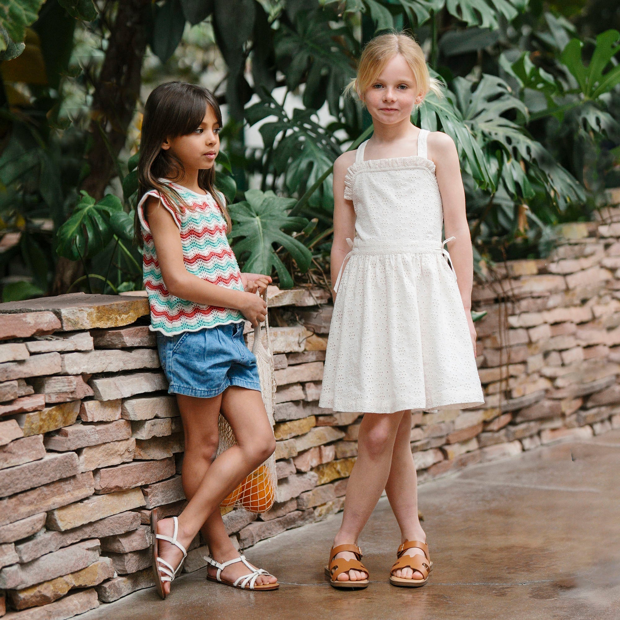 She'll be ready for every summer adventure in our airy organic cotton eyelet dress. Features feminine ruffle edges, cross back straps with adjustable buttons, and a button closure down the center back. A fun and fresh dress for the season ahead.