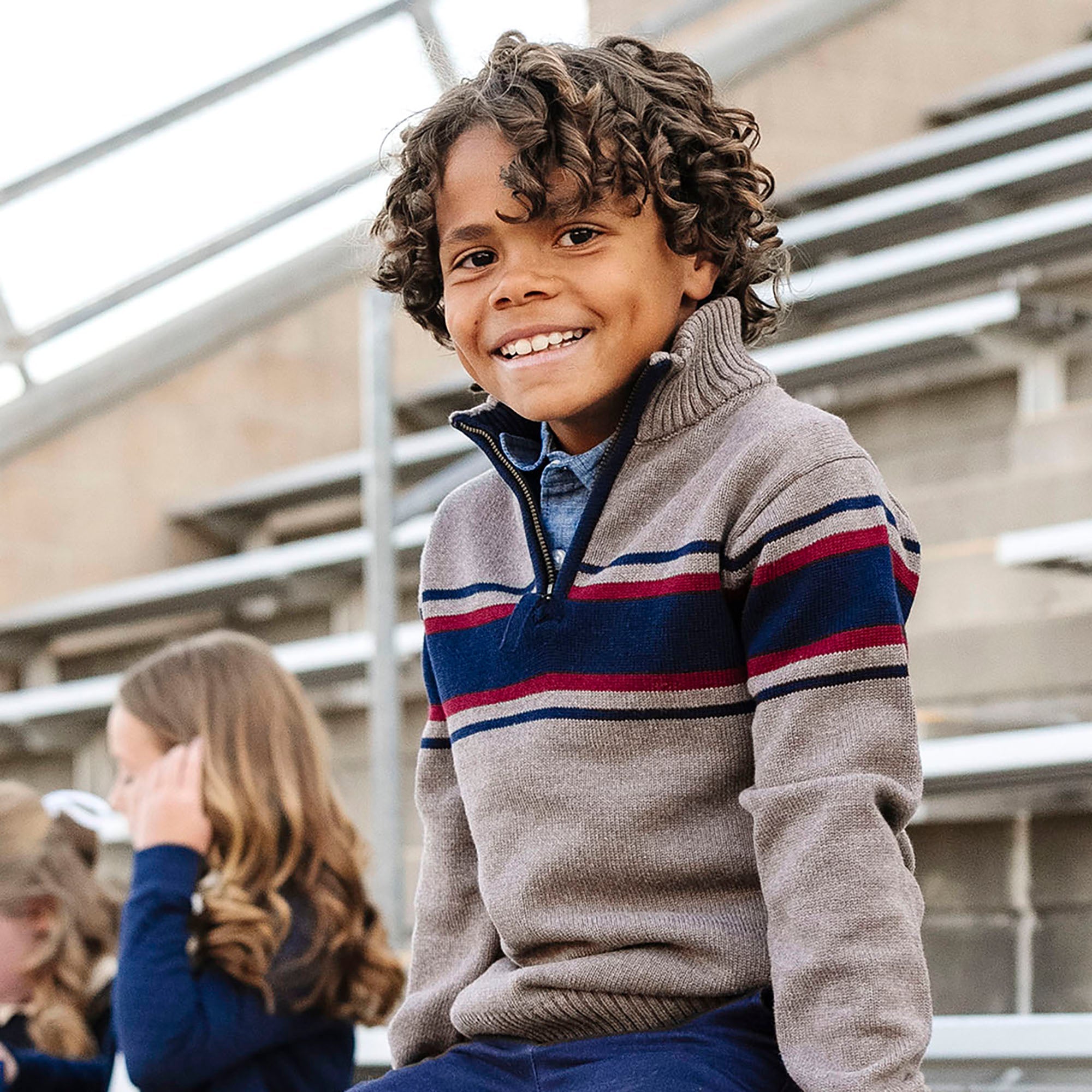 Our soft sweater will be a layering wardrobe staple for your stylish guy. Features a sporty, fall-forward engineered stripe. A ribbed mock neck and front half zip make for easy-on and easy-off, all in our signature cozy organic cotton yarn. Layer over one of our organic cotton button downs for a complete look.