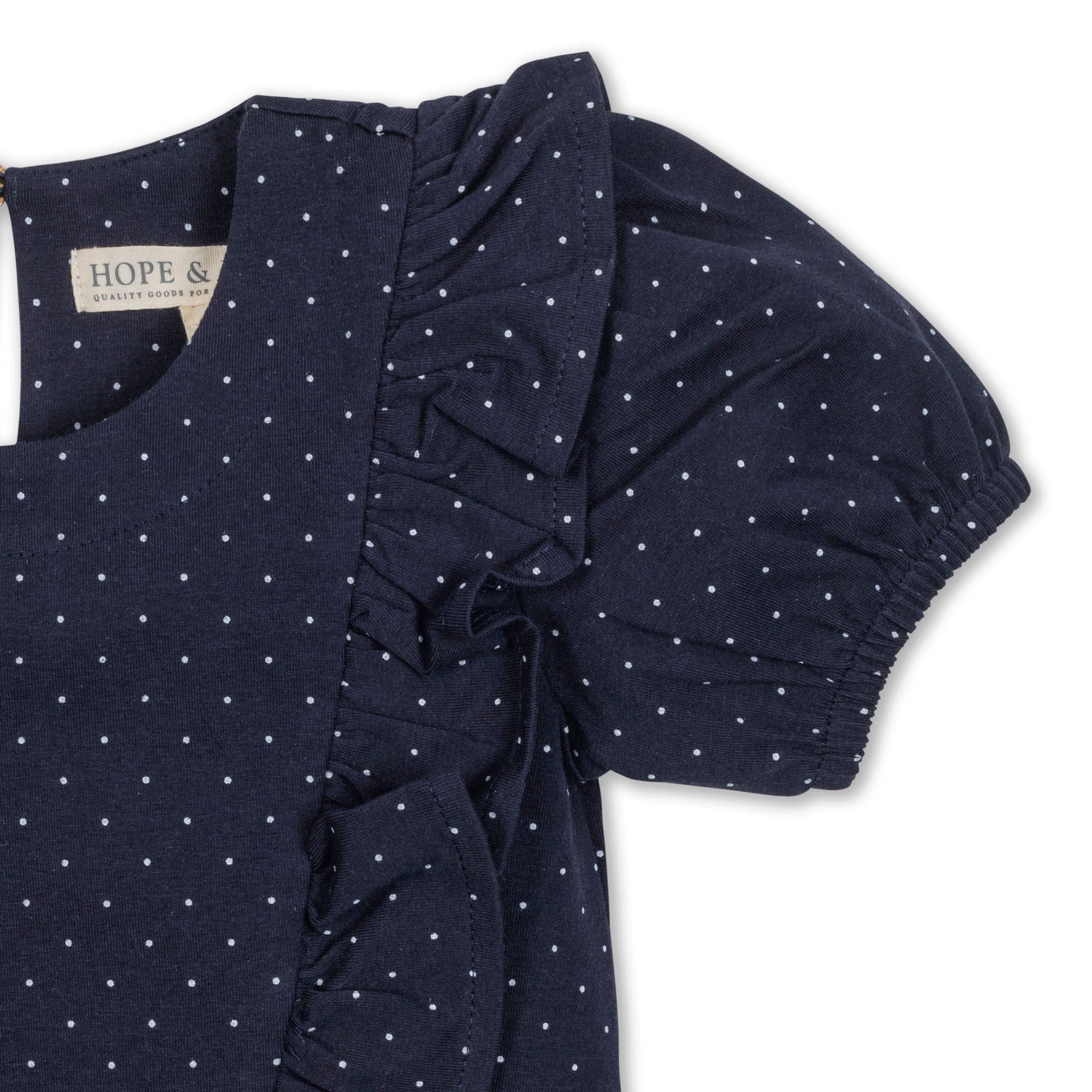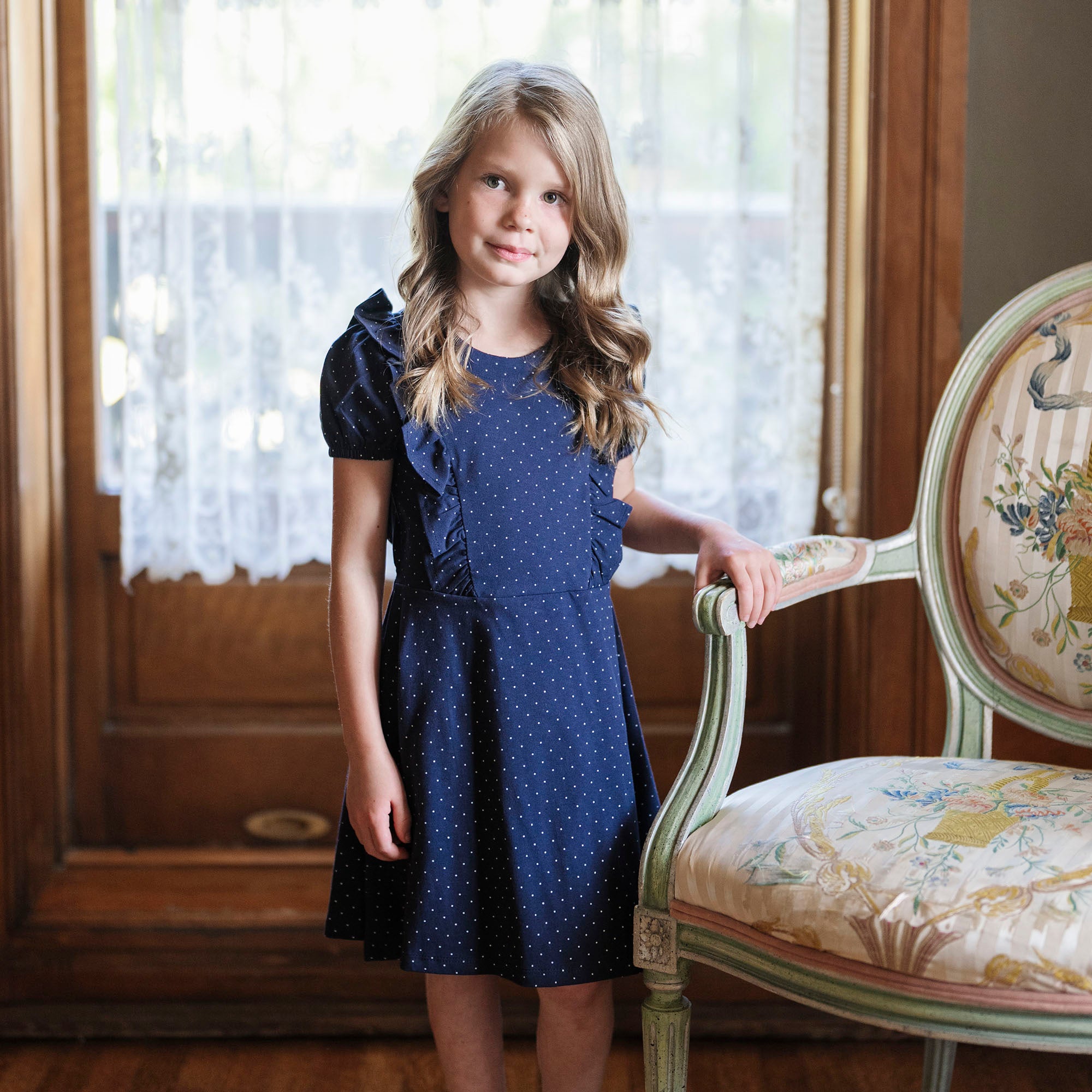 Between the stretchy and soft organic cotton jersey, the twirly full circle skirt, and cute ruffle details, this dress is sure to become an instant staple in your girl's closet. Features a gold keyhole closure at the back neck. A perfect piece for everday wear and for transitional weather between warm days and cool nights.