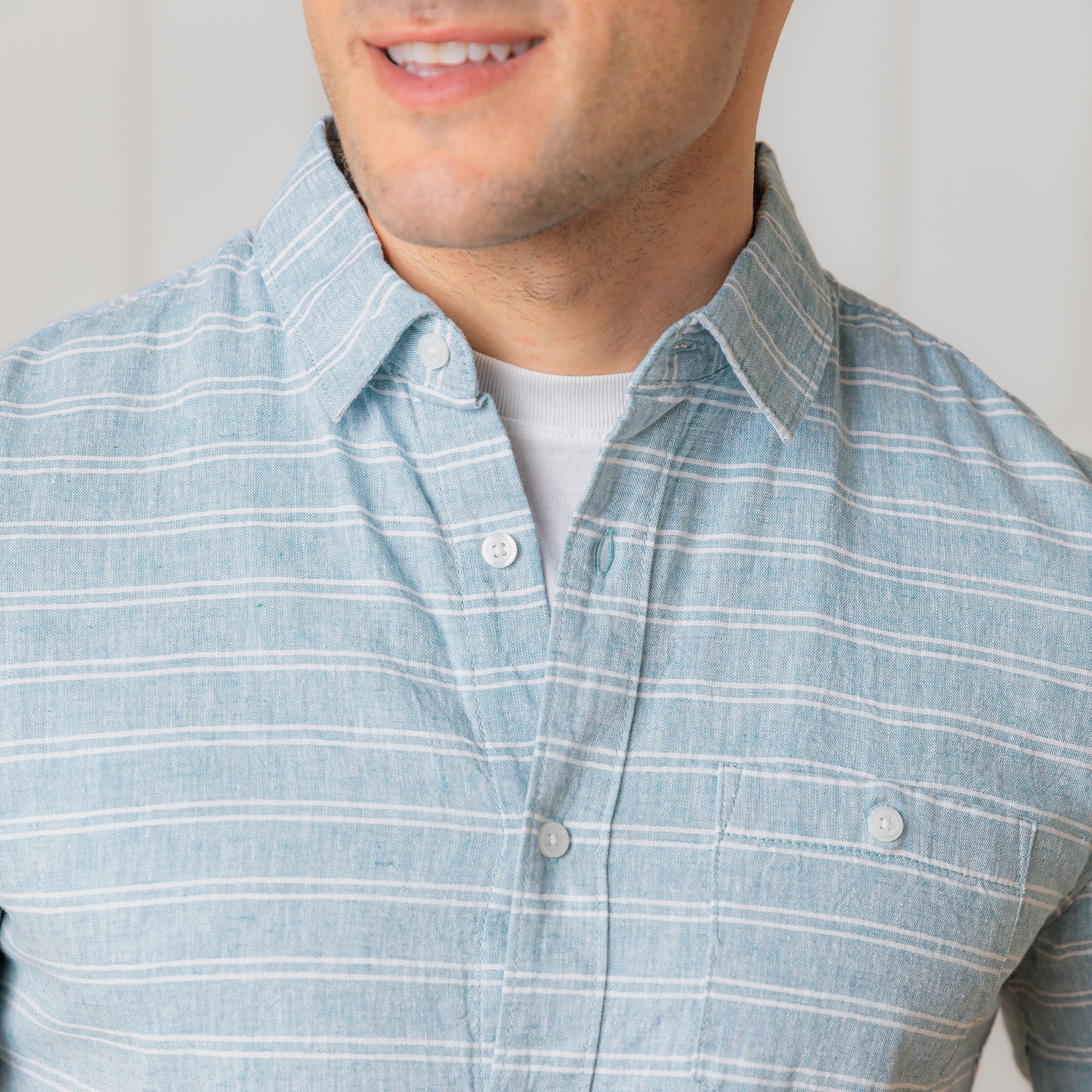 Our classic short sleeve button down shirt is cut from a soft linen and organic cotton blend which actually looks better with a few wrinklesmeaning it will still look great after an afternoon at the beach or in the board room. Features a functional chest pocket, center front button closure, and small canvas logo label at the inner placket.