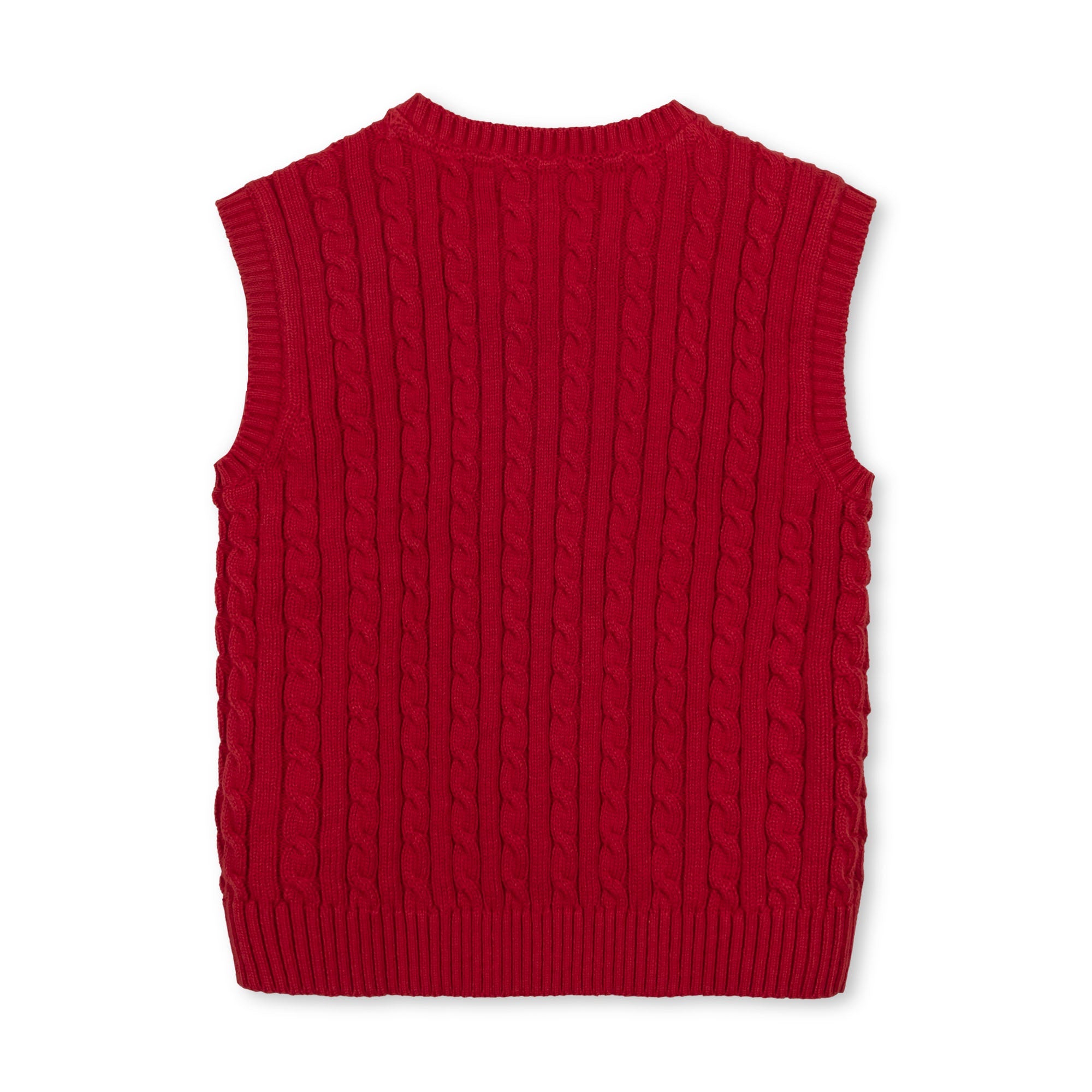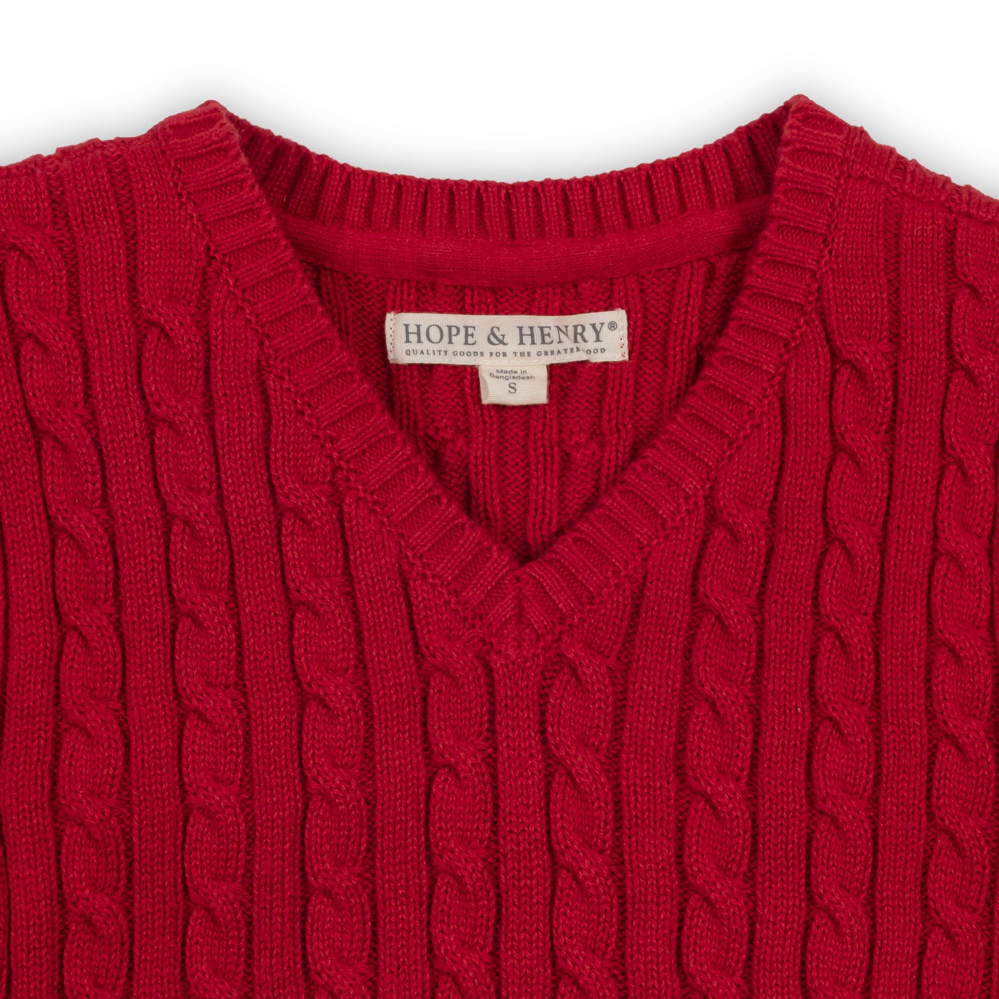 Our classic v-neck cable sweater vest is knit in soft organic cotton for the ultimate in comfort and style. Layers perfectly over our assortment of organic cotton button down shirts for a handsome look.